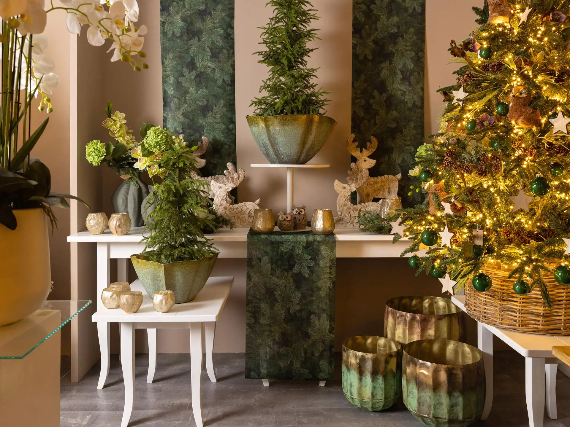 In questa collezione l'oro è il protagonista assoluto, si combina alla purezza del bianco neve, al calore del legno e al verde intenso degli alberi sempreverdi. Luci dorate, dettagli raffinati, statuine e complementi d’arredo, creano allestimenti eleganti, caldi e poetici. Ogni elemento, trasforma i tuoi spazi espositivi in un’atmosfera sospesa tra sogno e realtà.