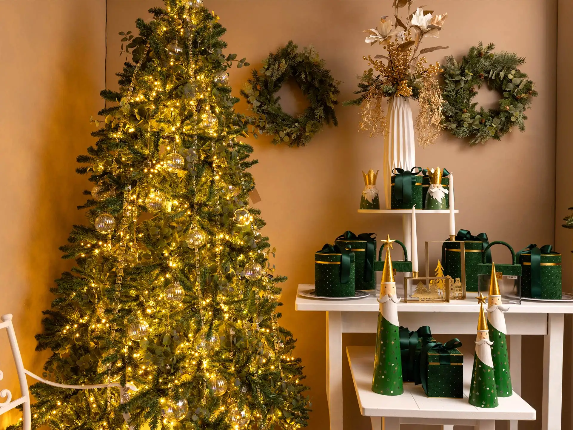Una collezione dove il verde, in tutte le sue sfumature, diventa protagonista, richiamando la bellezza della natura e regalando pace e serenità ai tuoi ambienti. Alberi di Natale, ghirlande, pigne e decorazioni si uniscono a complementi d’arredo in legno e feltro, creando allestimenti eleganti, caldi e ricchi di atmosfera.