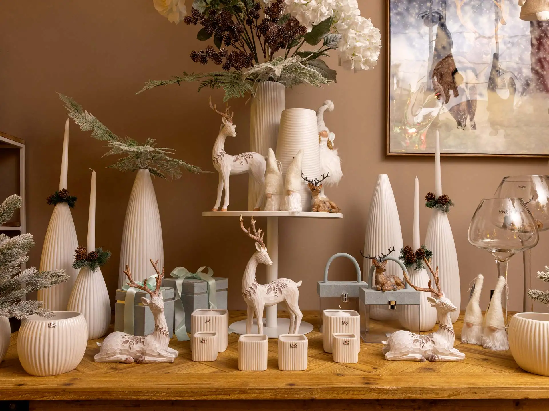 Collezione natalizia che unisce i toni ghiacciati del bianco a tocchi di argento e nero antracite, creando un’atmosfera nordica, elegante e raffinata. Ogni dettaglio celebra la purezza e l’eleganza del design nordico, tra sobrietà e fascino invernale.