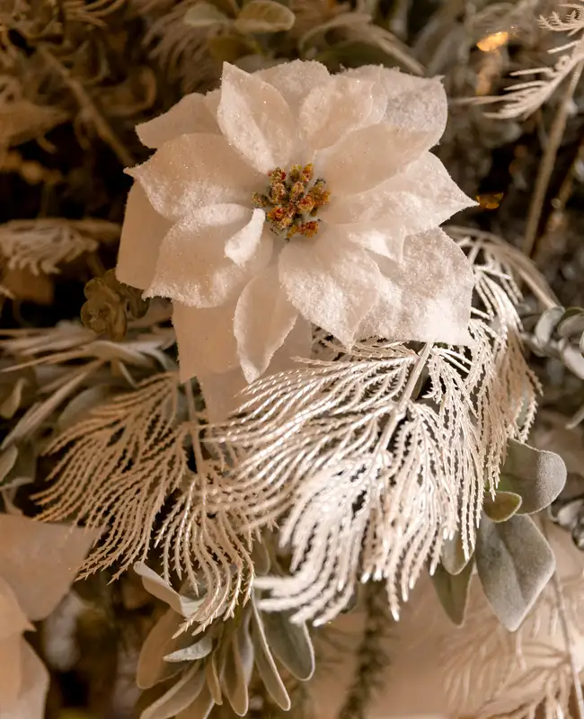 Stelle di Natale artificiali dall'elegante tonalità bianca. Perfette per arricchire decorazioni e centrotavola con un tocco raffinato e luminoso.