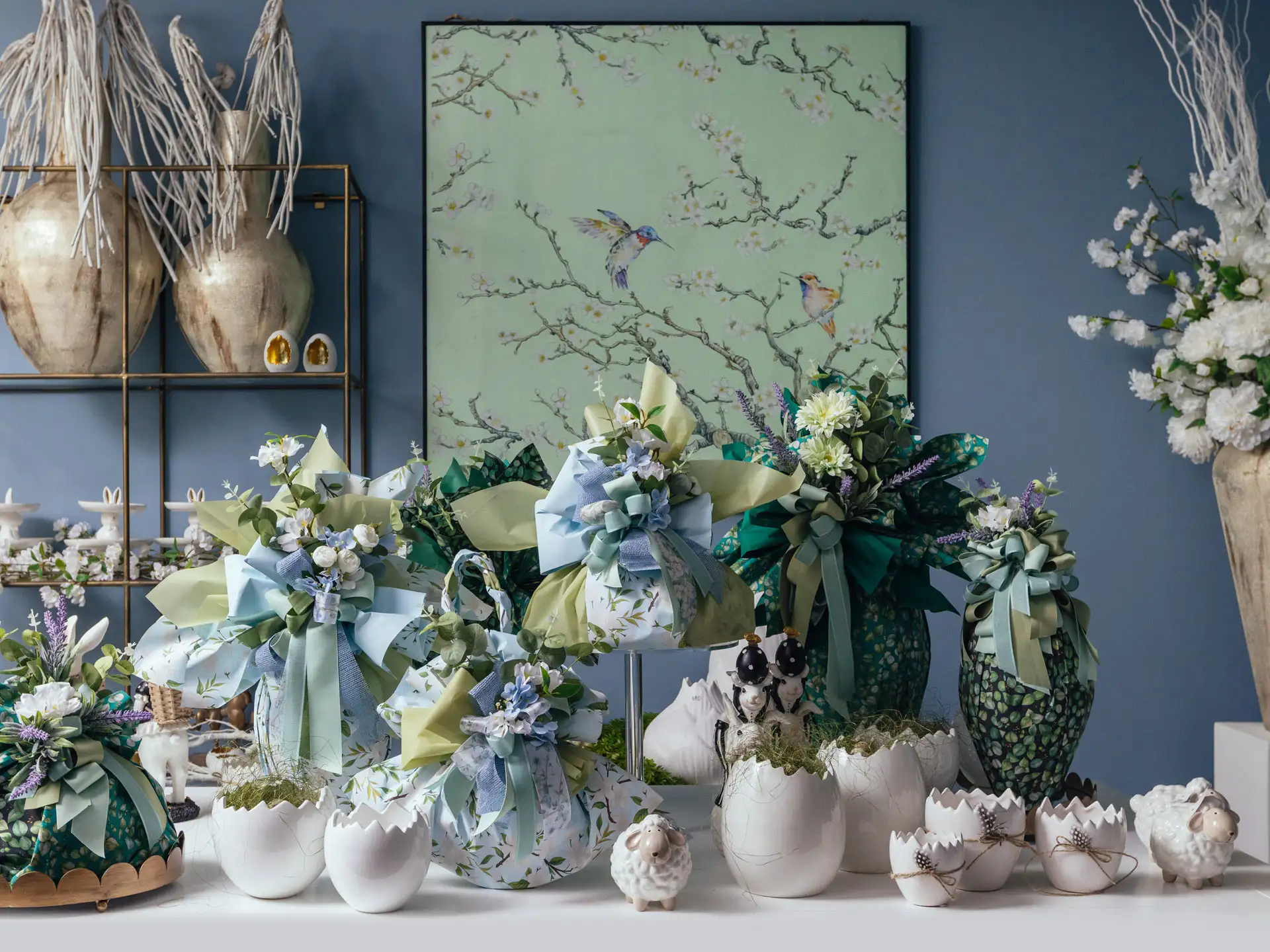 Carte di alta qualità, texture raffinate e nuance ton sur ton trasformano ogni confezione in un piccolo capolavoro. Coniglietti, fiori, gallinelle e fiocchi decorativi portano con sé tutta la magia e la delicatezza della Pasqua.