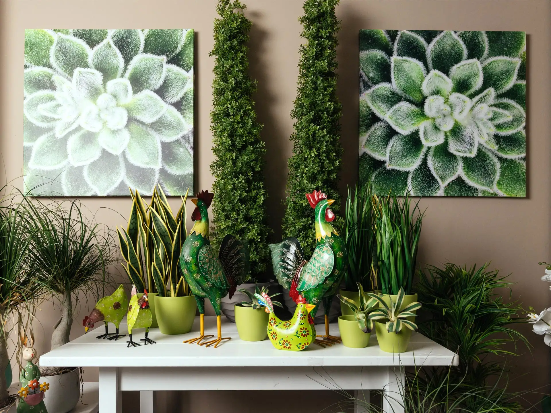 Galli, gallinelle, conigliette e paperelle interpretano la primavera portando allegria, colore e un tocco country a ogni spazio.