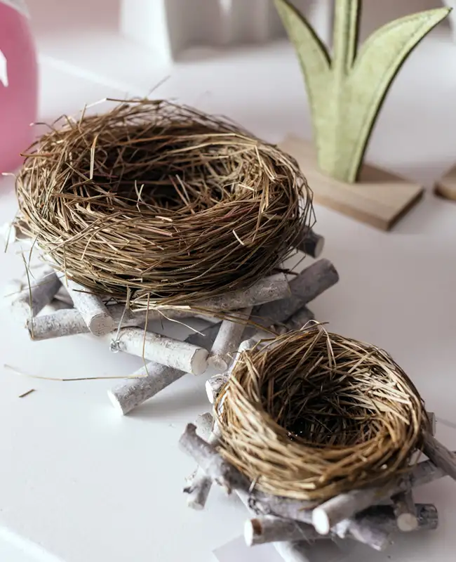 Cestino a forma di nido con base in legno, perfetto per composizioni pasquali e primaverili. La sua forma originale aggiunge stile e creatività ai tuoi allestimenti. Disponibile in diverse dimensioni.
