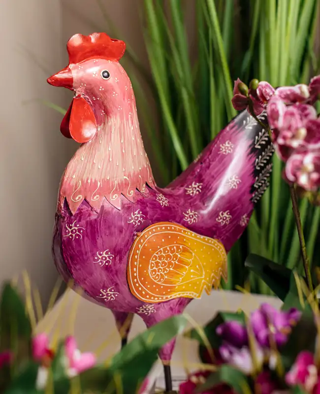 Gallinella decorativa e colorata, realizzata in metallo, perfetta per donare un tocco bucolico e primaverile ai tuoi allestimenti. Disponibile in diverse dimensioni e colori, aggiunge carattere e originalità a composizioni e scenografie.